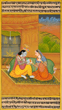 Painting: Raja Sansar Chand, who ruled Kangra in the later half of the 18th century, a patron of the arts, contributed greatly to the evolution of this genre. His palaces at Nadaun, Sujanpur Tira and various temples in the area were ornamented with murals. Jewel - like miniatures of the period, depicting court life, episodes from the life of Krishna etc., painted in rich colours are still to be seen in museums in India and abroad.